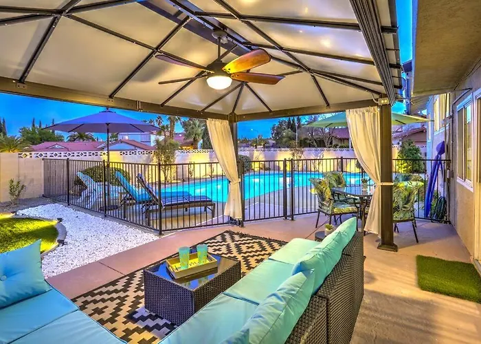 Los electrodomésticos de la cocina incluyen cafetera/tetera, nevera y un horno en una cocina completa. Los huéspedes pueden comer en el restaurante East Side Pizza, situado a unos 100 metros. Gracias a la parada de autobús Suncoast Hotel, situada bastante cerca de la Casa Lucaccini - Gym/Pool/Spa/ Prime Location 4Br, los huéspedes pueden explorar Las Vegas fácilmente. Esta villa ofrece zona de pícnic, zona de juegos y un jardín.